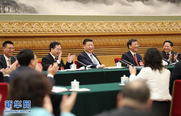 3月5日,中共中央总书记、国家主席、中央军委主席习近平参加十二届全国人大五次会议上海代表团的审议。 新华社记者兰红光摄