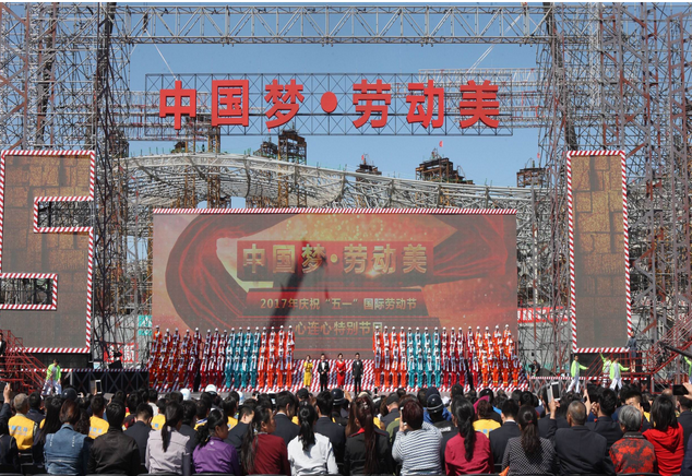 一条条通向未来的跑道,腾飞青春中国;一项项攻坚克难的工程,托起奋进中国——4月26日上午,北京新机场主航站楼建设工地一片欢腾:由中华全国总工会和中央电视台联合举办的“中国梦·劳动美”2017年庆祝“五一”国际劳动节心连心特别节目在这里拉开了主会场的帷幕,奏响献给劳动者的赞歌。全国五一劳动奖和全国工人先锋号获奖代表、新机场建设者、首都各行业职工代表等2000余人来到现场,共同庆祝劳动者的盛大节日。