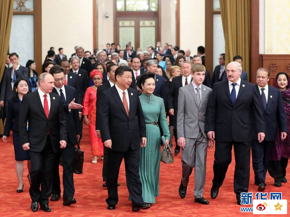 5月14日,习近平和夫人彭丽媛同贵宾们一同步入宴会厅。新华社记者 刘卫兵 摄