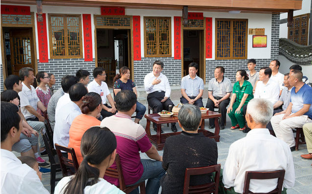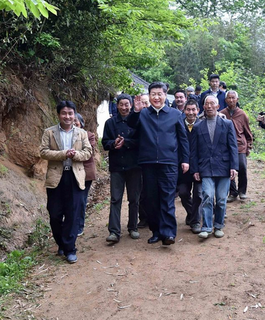 【扶贫足迹】2016年4月24日,习近平总书记来到金寨县花石乡大湾村走访村民。从北京坐了1个半小时飞机到合肥,又坐了1个半小时汽车到金寨,再用1个多小时进山来到这里,他就是要了解农村脱贫特别是革命老区扶贫的真实情况。