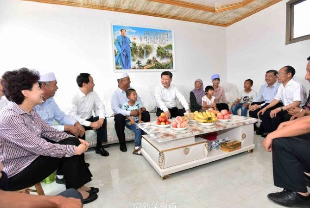 【扶贫足迹】西部地区是脱贫攻坚的短板。2016年7月19日,习近平总书记在银川市永宁县闽宁镇原隆移民村回族移民群众海国宝家中看望。