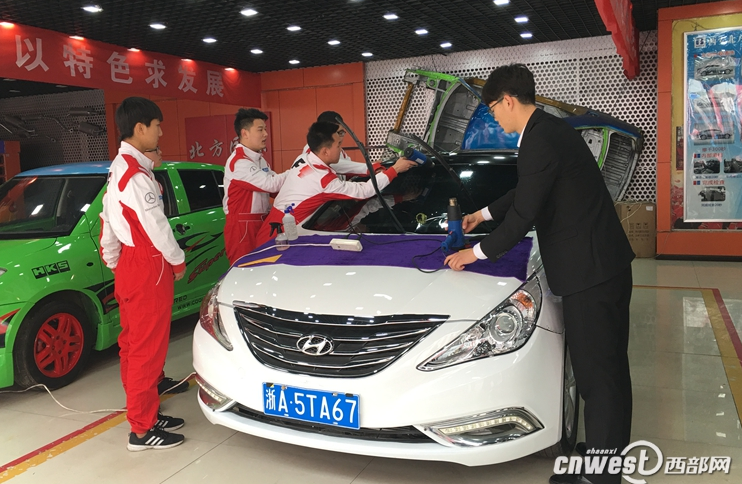 西安北方汽车工程学院的实践教室里,姚远正在给一辆汽车贴膜。距离毕业还有1个多月的时间,姚远心里却没有一点“找工作”的焦虑。