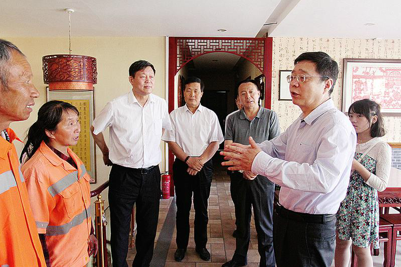 白阿莹一行在西安市红樽坊环卫工爱心驿站调研。臧慧摄
