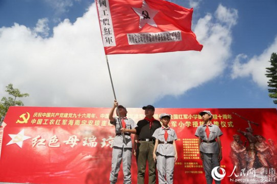 为纪念中国共产党建党九十六周年,纪念中国人民解放军建军九十周年,进一步弘扬红军精神,6月29日,全国红军小学建设工程理事会在定安为全国231所红军小学内的“中国工农红军海南定安琼崖母瑞山革命根据地红军小学、中国工农红军海南定安第二独立师红军小学”举行授旗授牌暨捐赠仪式。