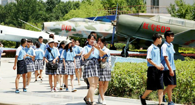 同学们在中国飞行试验研究院参观飞机。