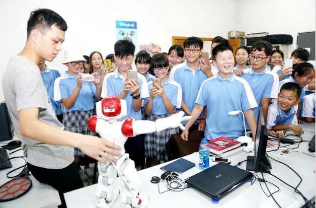 在这三天的游览与参观中,有一件记忆深刻的事令我难以忘怀,那就是看机器人跳舞。我迫不及待地冲进机器人活动室,一位个子高高的大哥哥正在调试机器人,我焦急地等待了几分钟,终于调试好了,这个机器人十分帅气,舞蹈动作优美顺畅,低头、弯腰、抬腿,逗得我们哈哈大笑。