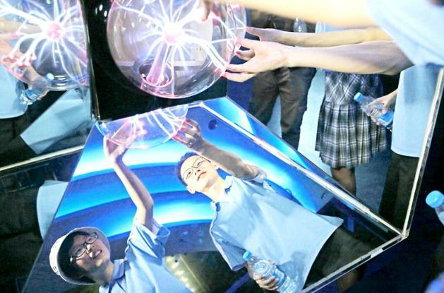 在陕西省自然博物馆,同学们感受科技的魅力。