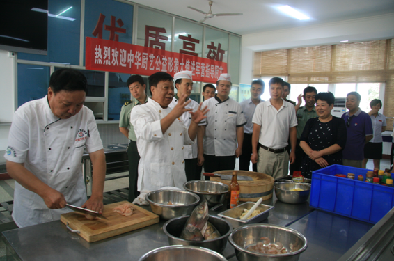 八一前夕,省财贸工会特别邀请陕西省劳动模范、国家级技能大师樊建国和中华厨艺公益形象大使、中国烹饪大师徐长安两位名厨,来到所属基层单位陕西省军粮供应站的服务对象驻陕部队军营,现场传授菜品面点烹饪技艺,受到军营官兵们的热烈欢迎。