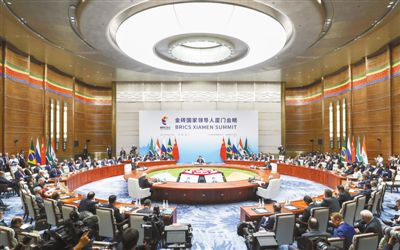 9月4日,金砖国家领导人第九次会晤在厦门国际会议中心举行。国家主席习近平主持会晤并发表题为《深化金砖伙伴关系 开辟更加光明未来》的重要讲话。(记者 马占成摄)