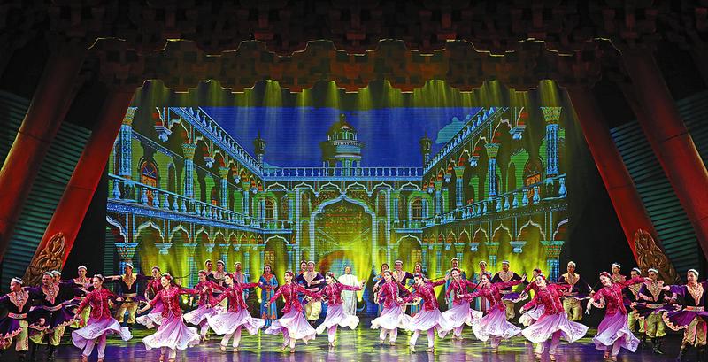 开幕式后,来自丝路沿线10个国家和我国10个省市区的艺术家联袂演出了文艺节目《一路同心》。(记者 万君)