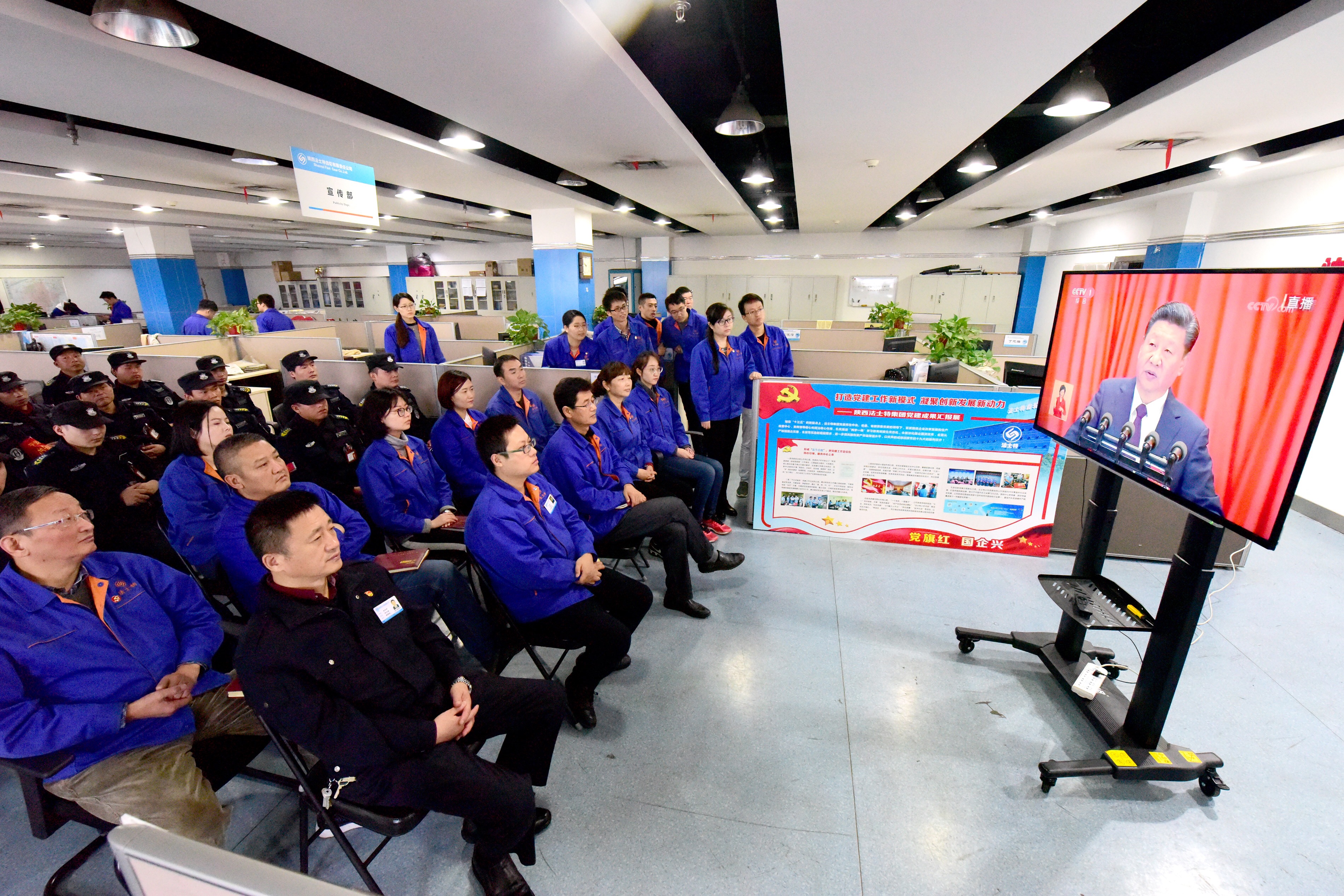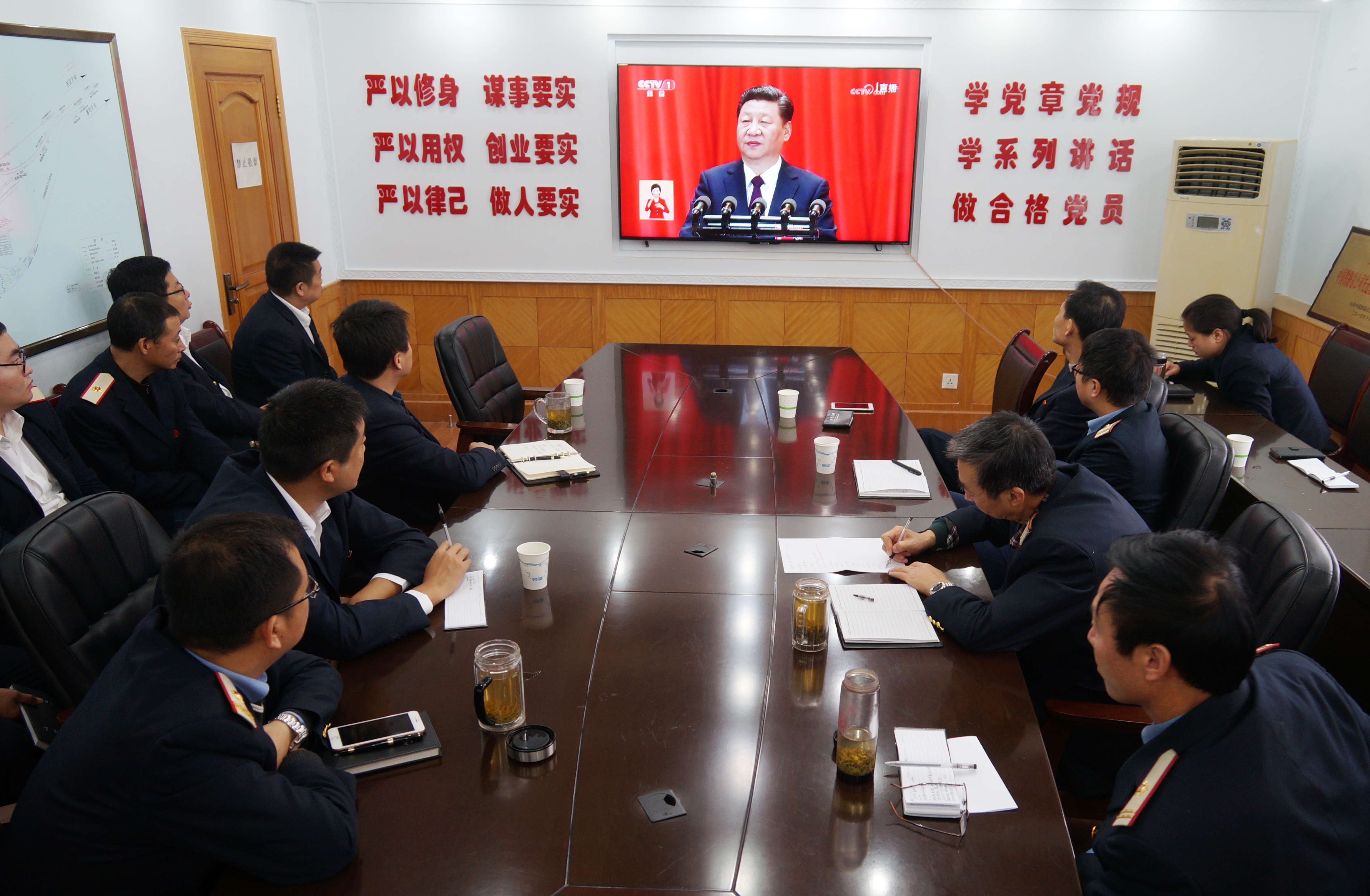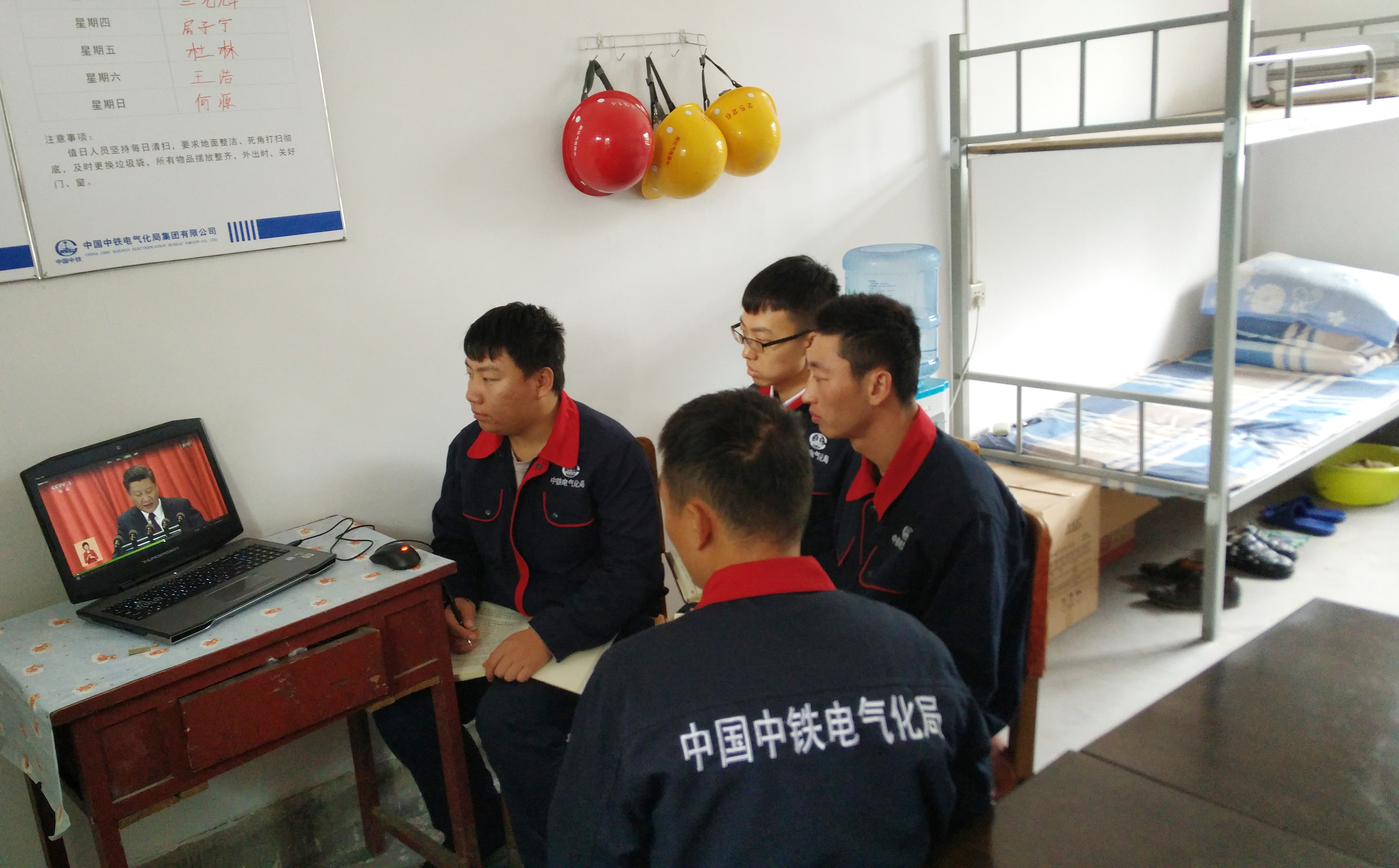 10月18日上午,中铁二十局六公司组织公司机关、所属单位和海内外各项目部职工收听收看党的十九大开幕会盛况。(通讯员 许岗 姜晗 摄)