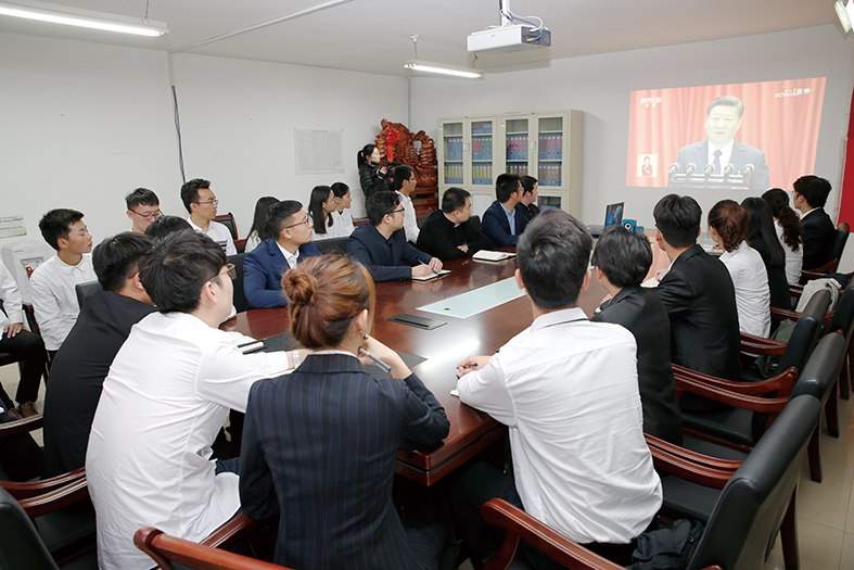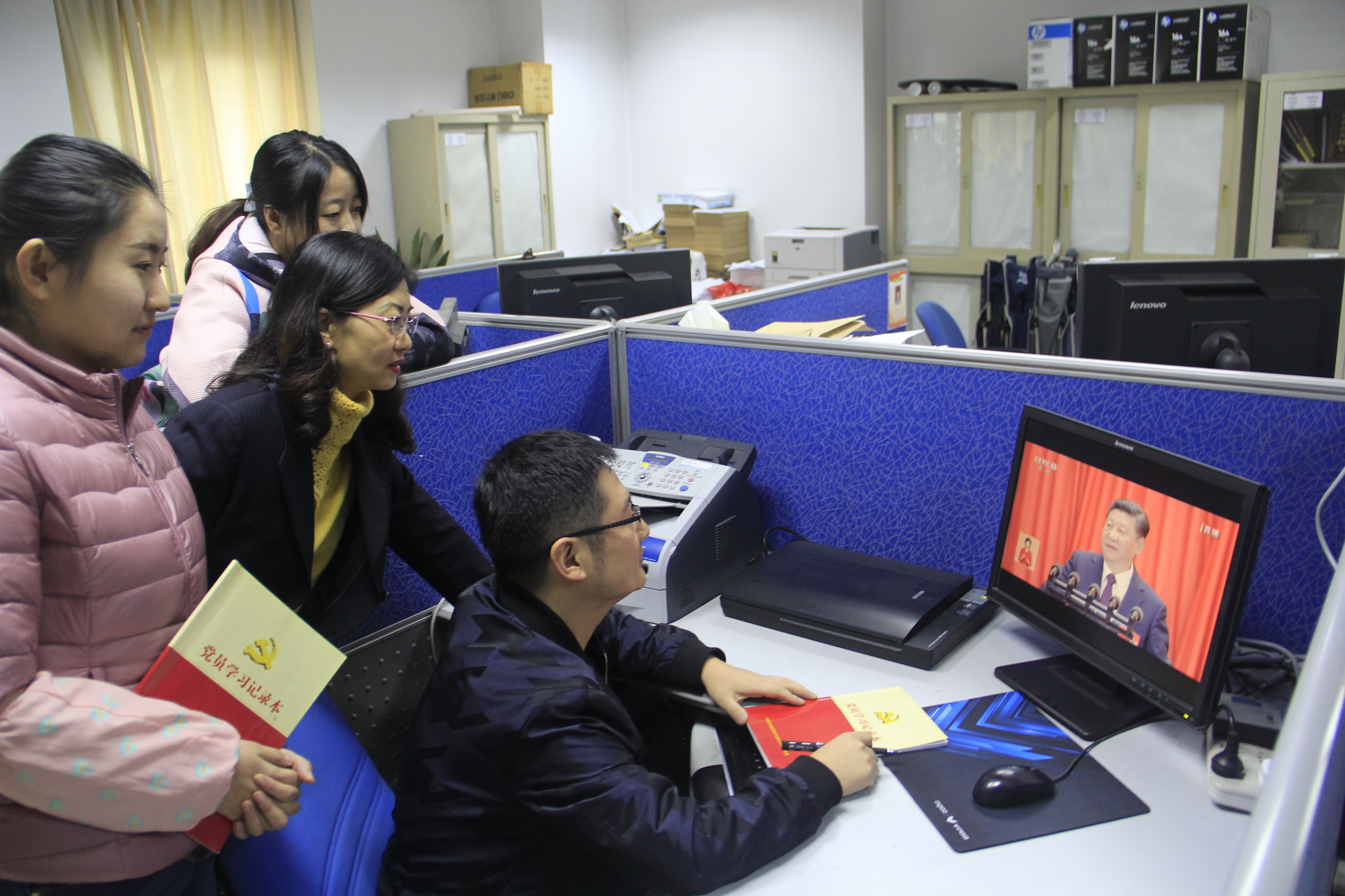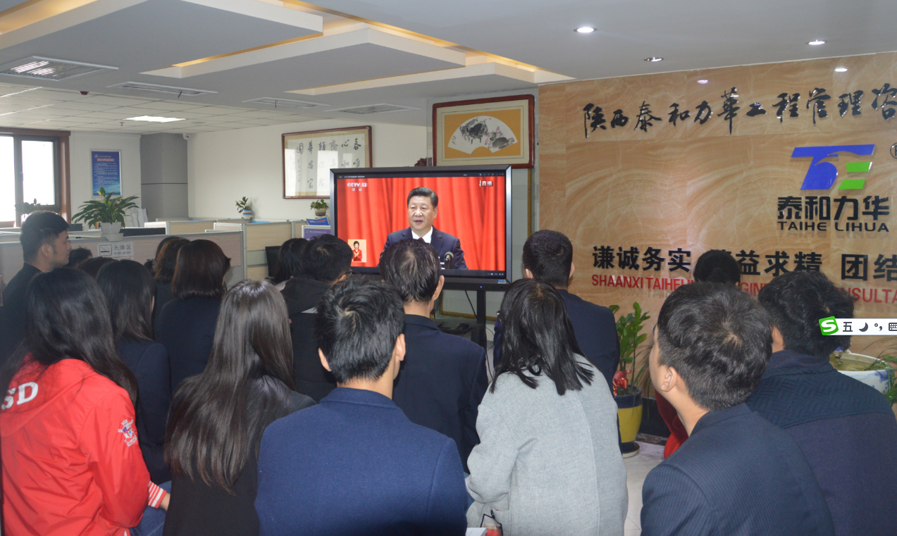 10月18日上午9时,党的第十九次全国代表大会隆重开幕,陕西泰和力华企业咨询有限公司组织全体职工集体收看十九大开幕会。 (记者 兰增干 摄)