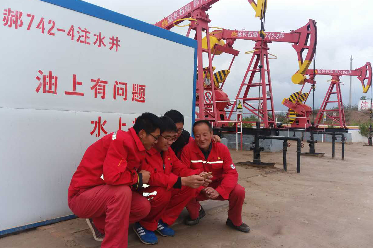 10月18日,延长石油杏子川采油厂采油四队职工一大早就开始打扫井场卫生、执行早间测量页面、有序组织井站发油。一切工作就绪后,他们打开手机收看十九大开幕会盛况。 (记者 胡建宏 摄)