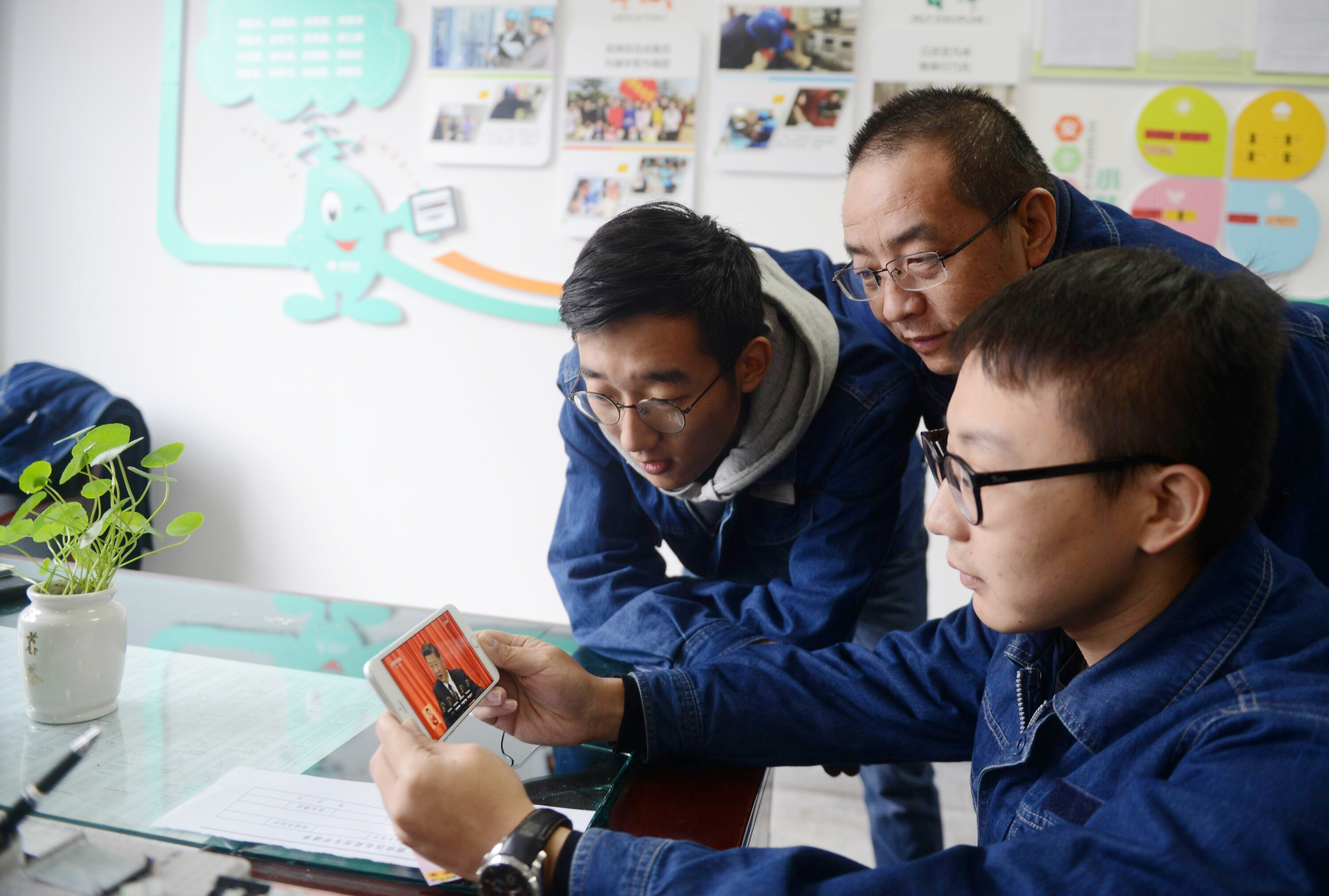 10月18日,党的十九大开幕,国网商洛供电公司一线员工在工作岗位上利用手机收看开幕会直播。(通讯员 刘军峰 摄)