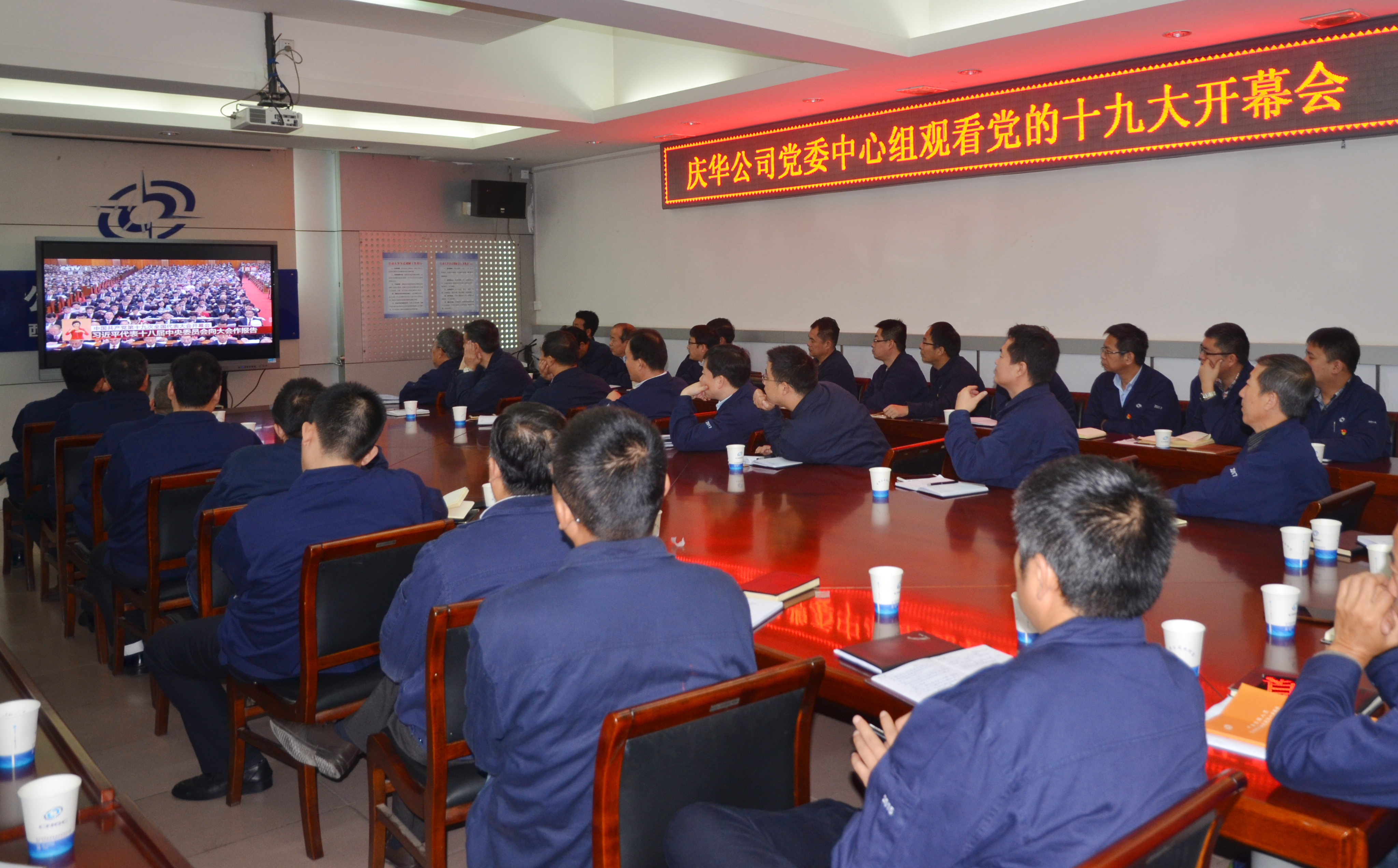 10月18日上午9时,延长石油集团化建公司在杨凌、兴平、茂陵、西安四个基地及各项目部分别开设会场,组织广大干部职工收看十九大开幕会。(通讯员 刘双春 陈练斌 摄)