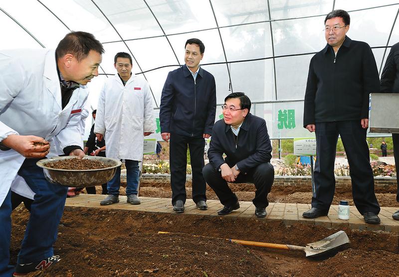 11月28日,省委书记、省长胡和平深入商洛市柞水县调研,图为他在下梁镇西川村木耳产业基地了解食用菌栽培技术、市场情况和带动脱贫的效果。 (记者 宋红梅摄)