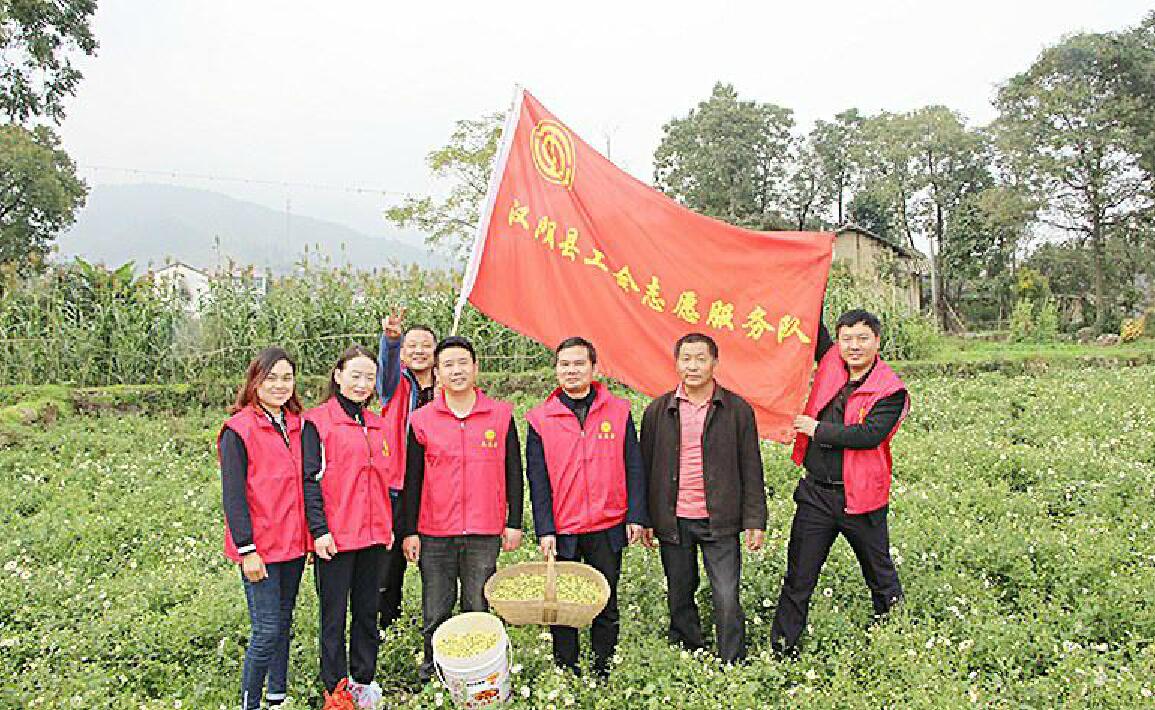 汉阴县工会志愿服务队帮助贫困户采摘菊花