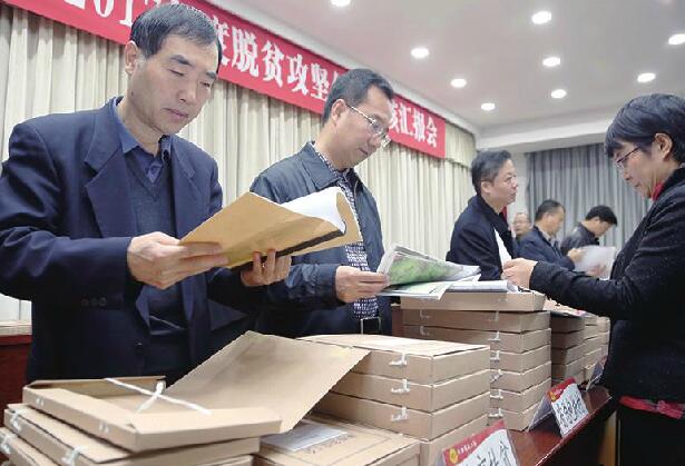 考核组现场翻阅省总工会扶贫档案和有关卡册账表 记者 鲜康
