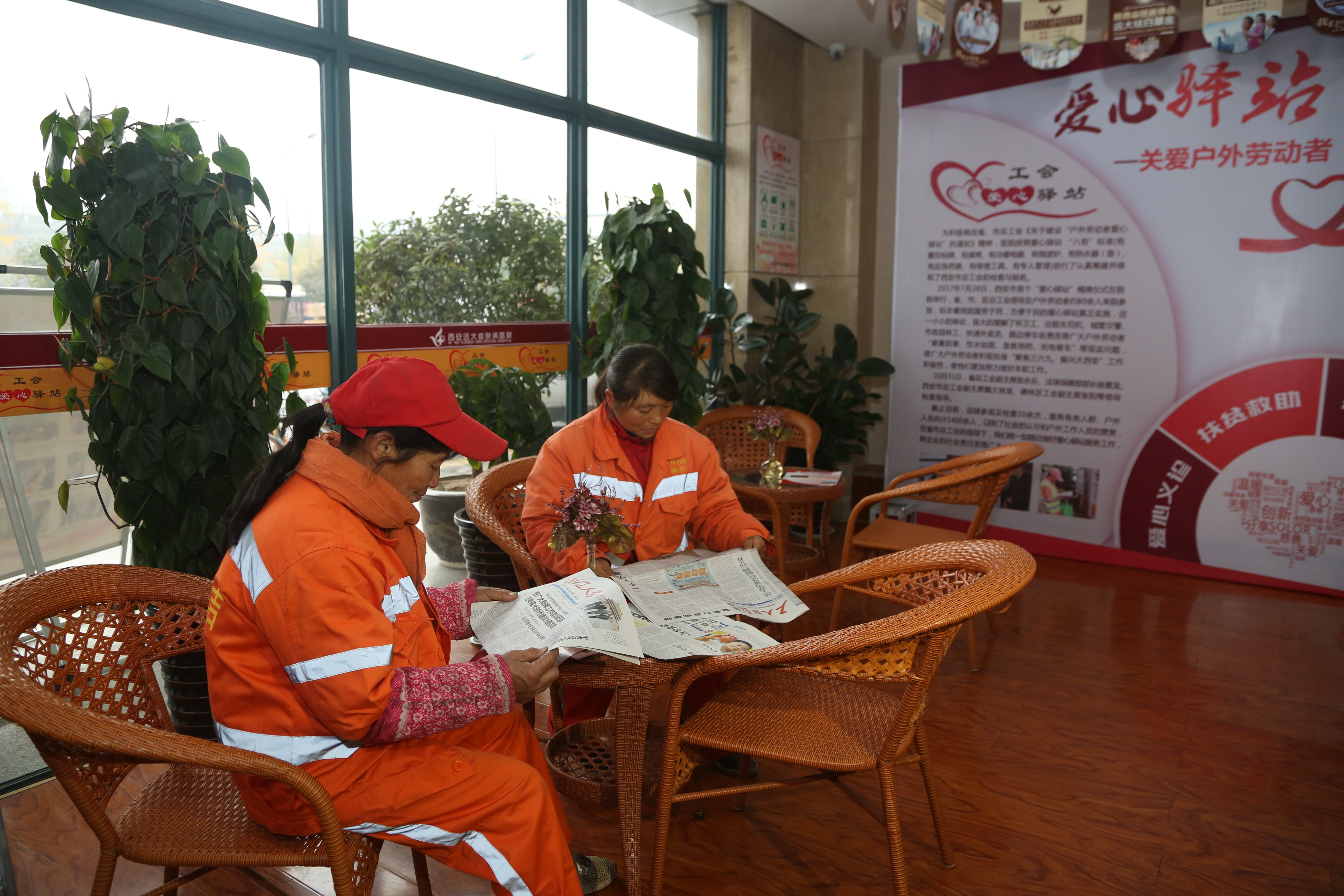 工会爱心驿站,在这个寒冷的冬日为你带去工会的温度。陕西工会在西安、咸阳先行试点推进户外劳动者服务站点建设,为广大户外劳动者搭建一个遮风避雨的温馨港湾。目前,105个工会爱心驿站已亮相古城西安,统一的名称,统一的标识,统一的外部风格,使之成为城市里一道亮丽的风景线。从早上8点到晚上8点,工会爱心驿站为包括环卫工人、出租车司机、交警及城管执法人员、市政园林工、快递外卖员等在内的户外工作者免费提供服务。驿站里,空调、饮水机、微波炉、桌椅、应急药箱、简易工具箱、多孔插座、报刊杂志等设施应有尽有,保证户外劳动者“渴了能喝水,热了能乘凉,冷了能取暖、累了能休息、饿了能热饭,伤了能急救”。小小的驿站体现大大的关怀,工会爱心驿站是工会创新服务职工工作的又一举措,预计2018年将会有更多的工会爱心驿站面世,使更多的职工群众感受到工会的亲情服务。
