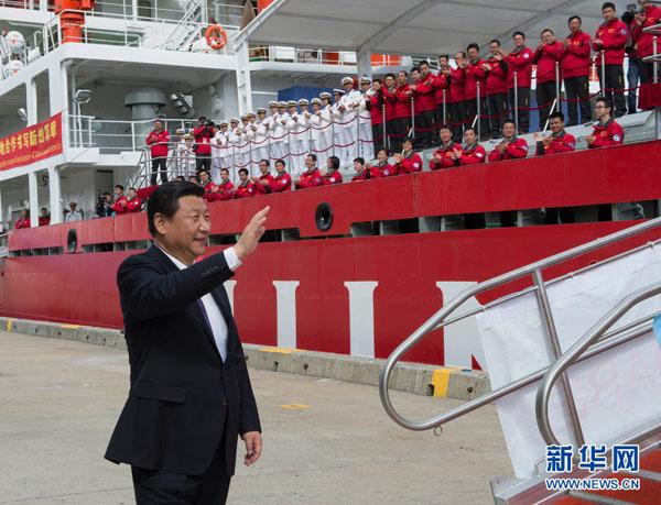 2014年11月18日,正在澳大利亚访问的习近平到霍巴特港看望正在这里补给的“雪龙”号全体科考人员。