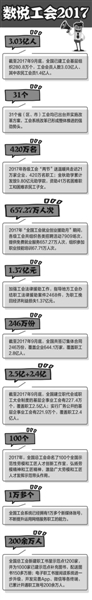 这一年,各级工会把改革作为一项重大政治任务,聚焦增强政治性、先进性、群众性,在建机制、强功能、增实效上下功夫,以更大力度更实举措推动工会改革向基层延伸,努力让改革发展成果更多更公平惠及广大职工。以改革创新为动力,工会基层基础更加牢固。截至2017年9月底,全国已建工会基层组织280.8万个,工会会员人数3.03亿人,其中农民工会员1.4亿人。