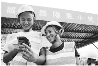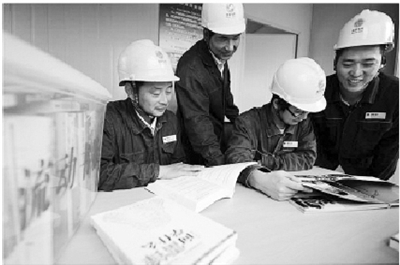 安徽送变电工程公司的职工在工作之余聚集在流动书箱旁读书加油充电。