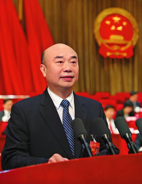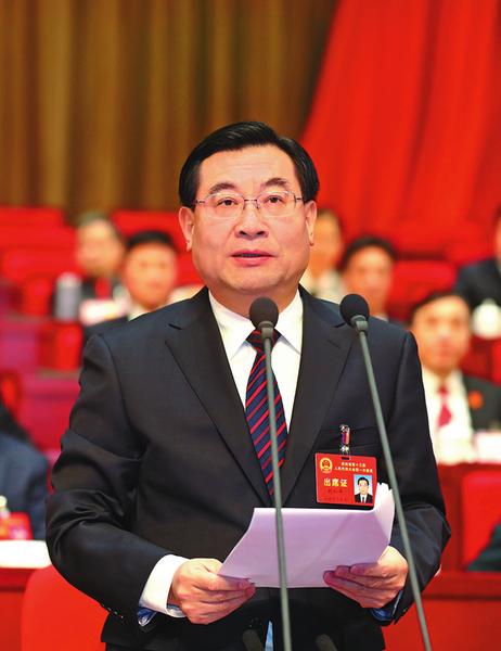 代省长刘国中向大会作政府工作报告。 记者 宋红梅摄