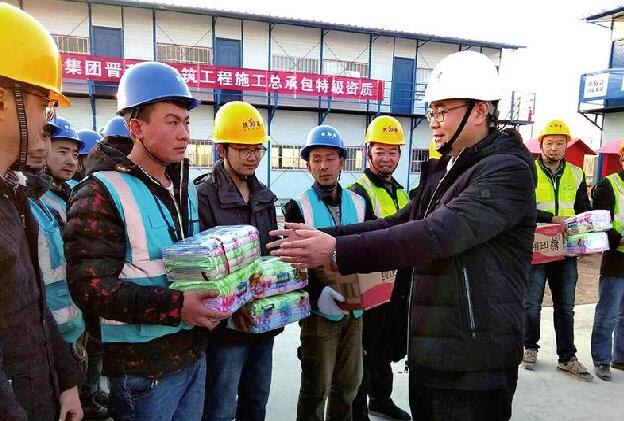 在春节来临之际,陕建八建集团“冬送温暖”慰问活动正紧锣密鼓地进行着。该集团先后向兰州、铜川和渭南等地坚守在施工一线的300余名农民工送去了冲锋衣、手套、毛巾、护手霜,以及米面油等慰问品,让农民工兄弟在工地上感受到了“家”的温暖。通讯员解党谋摄