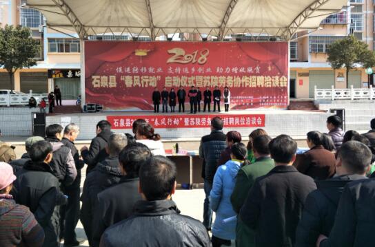 2月5日,石泉县2018年“春风行动”启动仪式暨苏陕劳务协作招聘洽谈会启动仪式,在池河镇西苑广场举行。