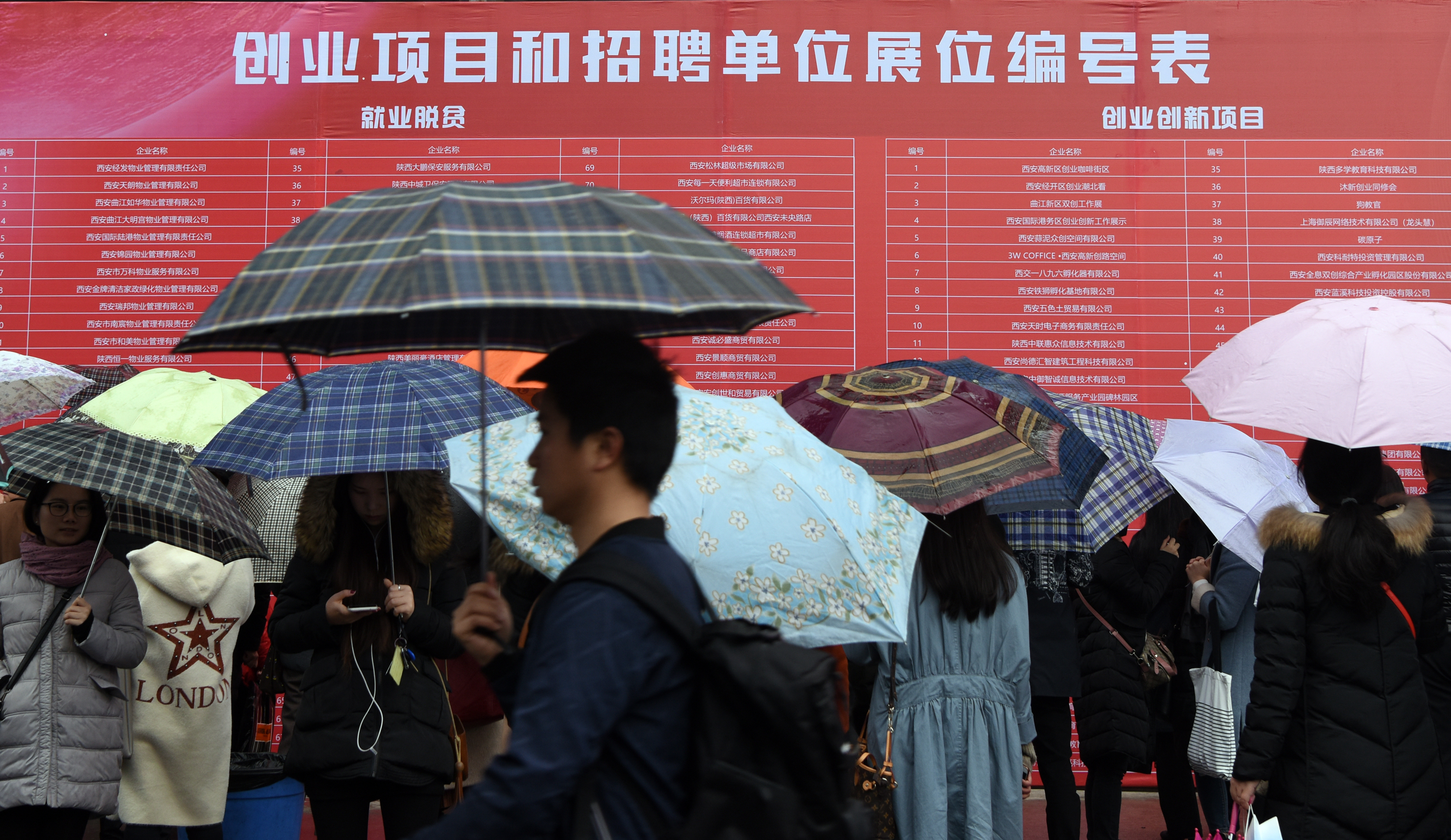 3月6日,下着小雨,却阻挡不住求职者前往咸阳市2018年“春风行动”暨工会就业扶贫免费招聘洽谈会的脚步。