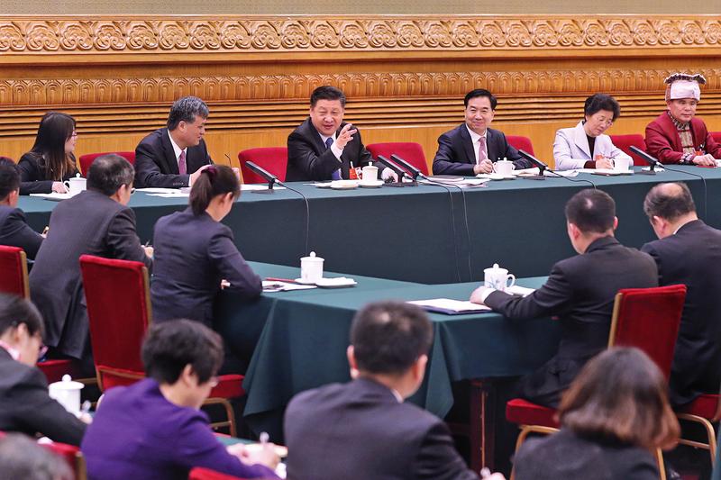 中共中央总书记、国家主席、中央军委主席习近平,中共中央政治局常委、国务院总理李克强,中共中央政治局常委栗战书,中共中央政治局常委、国务院副总理汪洋,中共中央政治局常委、中央书记处书记王沪宁,中共中央政治局常委、中央纪委书记赵乐际,中共中央政治局常委韩正,7日上午分别参加了十三届全国人大一次会议一些代表团的审议。