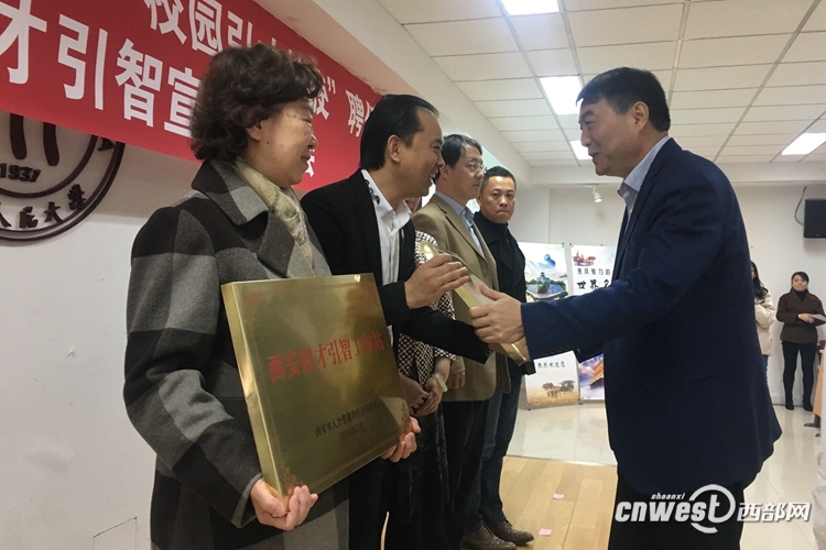 3月22日,西安市人社局在中国人民大学举办2018“新丝路西引力”西安人才引进行动计划——西安首批“招才大使”聘任大会,为首批12名“招才大使”和24名“校园引才特使”中的部分代表颁发聘书,并为中国人民大学、北京师范大学和北京寰球人才交流服务中心等5家“引才工作站”授牌。