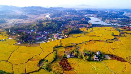 安徽省舒城县棠树乡丰收的稻田、纵横交错的道路、错落有致的村舍,构成一幅迷人的乡村田园美景画。近年来,当地积极发展生态旅游业,兴建乡村旅游通道,游客方便、村民增收,取得显著成效。(图片来源:新华网)