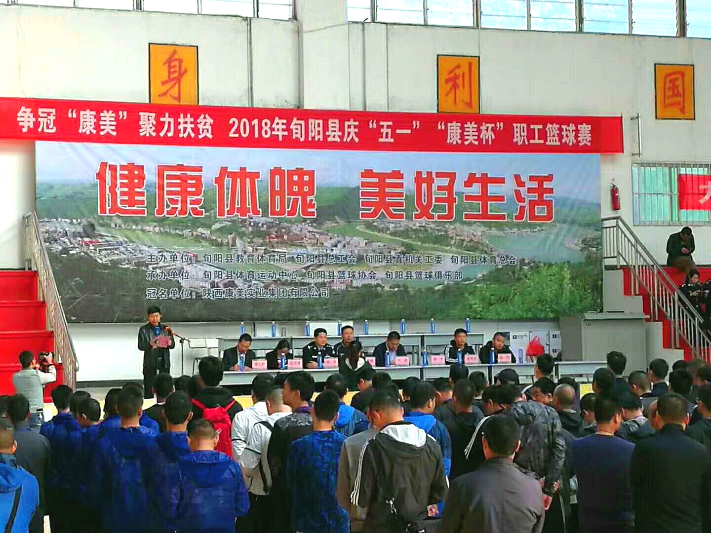 4月17日,由旬阳县总工会、县教体局、县直机关工委、县体育总会主办,县体育运动中心、县篮球协会、县篮球俱乐部承办的争冠“康美”聚力脱贫2018年旬阳县庆“五一”“康美杯”职工篮球赛,在县体育馆隆重开幕。