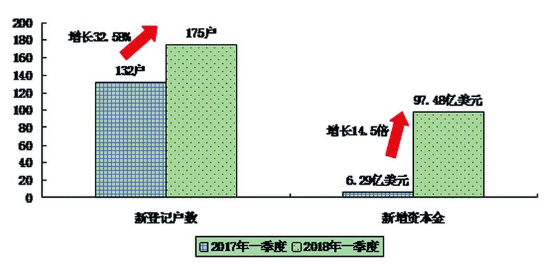 2018年一季度新登记外资企业数量与2017年一季度比较。