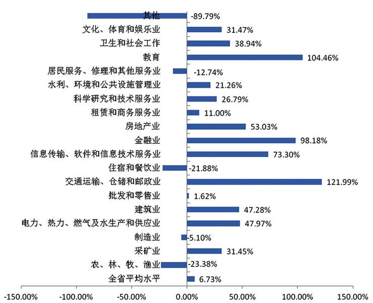 四、新产业新业态增长活跃。一季度,全省新登记交通运输仓储邮政业1.7万户、教育458户、金融业543户、信息传输软件和信息技术服务业4343户,同比分别增长1.22倍、1.04倍、98.18%、73.30%。从投资增长领域来看,交通运输业、文化体育和娱乐业、教育等领域投资活跃,新增注册资本(金)同比分别增长8.68倍、92.26%、80.50%。枢纽经济、门户经济、流动经济类主体快速增长特征明显。