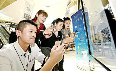 “闲了看看电子书,还是免费的,真好!”426日上午,在西安世纪金花钟楼店广场,纺织城客运站售票员杨静和同事在一台电子书屋前用手机扫描二维码。这是记者在西安工会电子公益书屋启动暨捐赠仪式上看到的一幕。