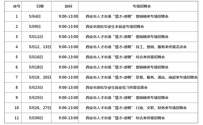 (一)西安市人才市场安排11场招聘会