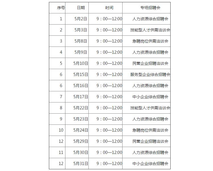 (三)大麦市街人力资源市场安排4场招聘会
