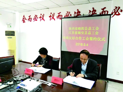 怎样使外出务工大军“稳得住,能致富”一直是略阳县总工会主席巩长青关心关注的重点。为进一步深化苏陕扶贫协作,提升脱贫攻坚帮扶成效,本着“优势互补、合作并进、共同发展”的原则,立足为赴苏人员创造“安心工作,舒心生活”的良好氛围,经磋商,5月4日,略阳县总工会主席巩长青专程赴苏与海安县总工会党组书记柴宝清共同签订缔结“友好合作工会”协议。建立“相互学习互通信息、密切协作服务职工、法律援助维权联动”三项机制,联通略阳―海安外出务工人员维权保障桥梁。