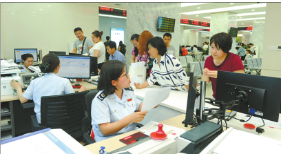 5月7日上午,在西安税务办税服务厅(碑林),一批纳税人在导税人员的指引下,通过各办税窗口、自助办税区顺利办理了各项业务。通过服务大厅40台智能化自助办税终端,纳税人可自助办理发票领取、代开等业务。 记者 巨跃先摄
