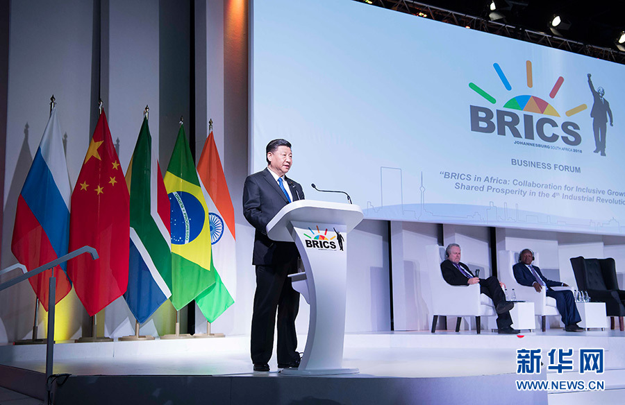 7月25日,国家主席习近平应邀出席在南非约翰内斯堡举行的金砖国家工商论坛,并发表题为《顺应时代潮流 实现共同发展》的重要讲话。 (记者 王晔 摄)