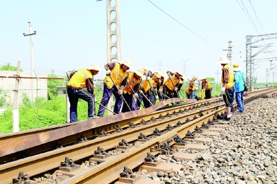 图为该段职工正在更换钢轨 刘晓瑞 摄