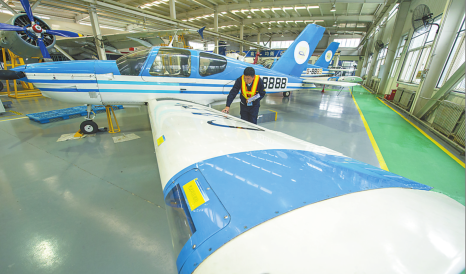 西安航空基地不断延伸产业链,在支持航空制造企业发展的同时,大力帮助航空服务类企业做大做强。5月4日,学员在西安航空基地金宇航空维修培训中心进行真机维修。 记者 刘强摄