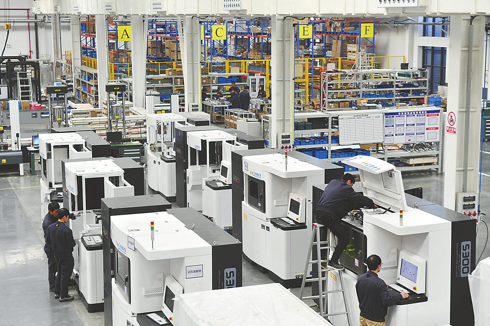 3月9日,西安铂力特增材技术股份有限公司生产车间,工人们正在组装金属3D打印设备。 记者 刘强摄