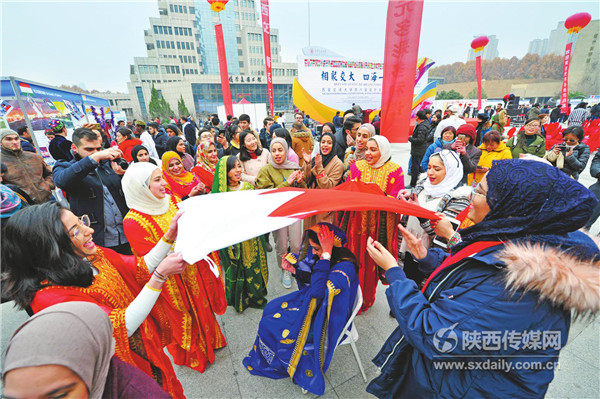 在西安交通大学第六届国际文化节上,来自英国、俄罗斯、韩国、巴基斯坦等132个国家的两千余名留学生以不同的形式展示本国文化。 记者 刘强摄