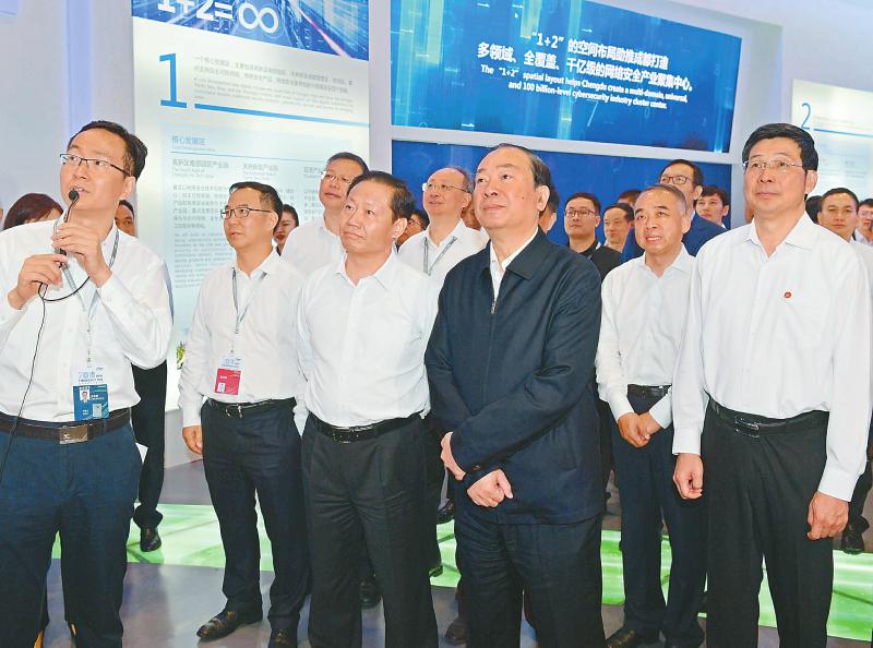 9月19日,中共中央政治局委员、中宣部部长黄坤明等参观网络安全博览会。(记者 欧阳杰)