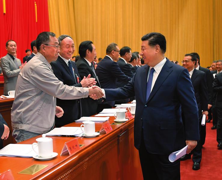 10月22日,中国工会第十七次全国代表大会在北京人民大会堂开幕。这是中共中央总书记、国家主席、中央军委主席习近平等同与会代表亲切握手。 记者 李学仁摄