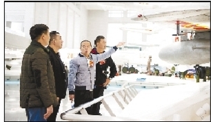 10月25日,陶安代表和几名代表一起来到中国人民革命军事博物馆参观。51岁的陶安(右二)被誉为“车工大王”,是中国航发贵州红林航空动力控制科技有限公司车工。