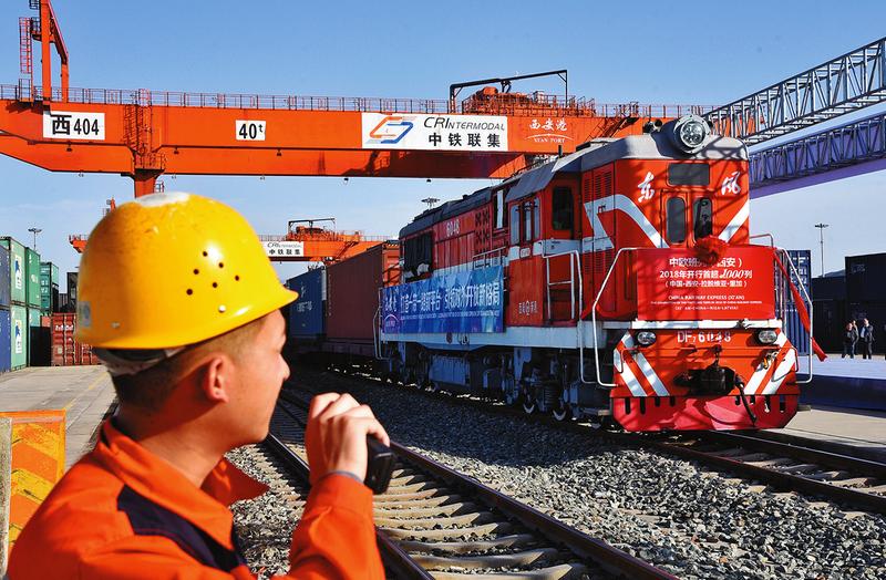 10月30日下午,满载货物的中欧班列“长安号”缓缓驶出站台,开往拉脱维亚首都里加。截至10月30日,“长安号”国外开行共计1030列,重载率99.9%,居全国中欧班列第一阵营。(资料照片) 记者 袁景智摄